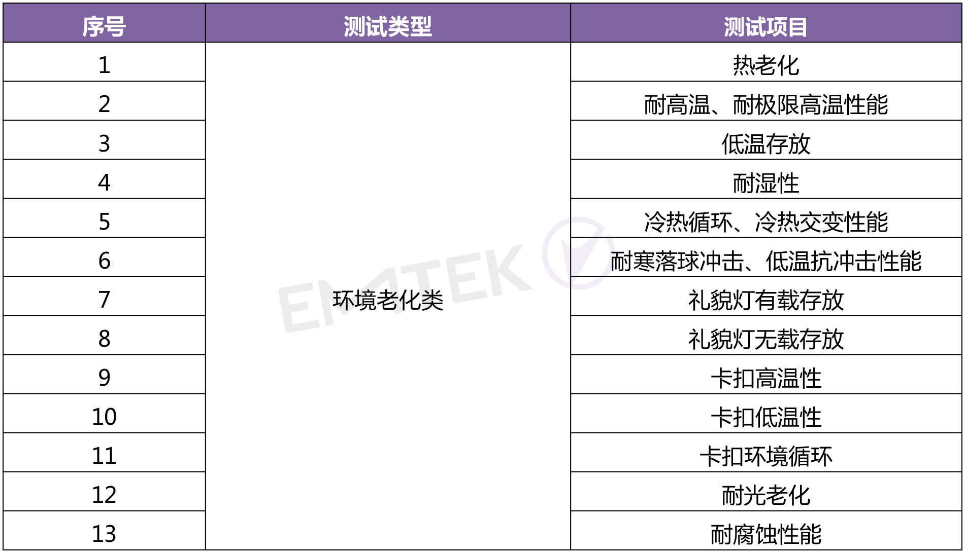 是將產品暴露在自然的或人工的環境條件下經受其作用,以評價產品在實際使用、運輸和貯存的環境條件下的性能,并分析研究環境因素的影響程度,包含的環境試驗如熱老化、低溫存放、冷熱循環、低溫沖擊、耐光老化等;