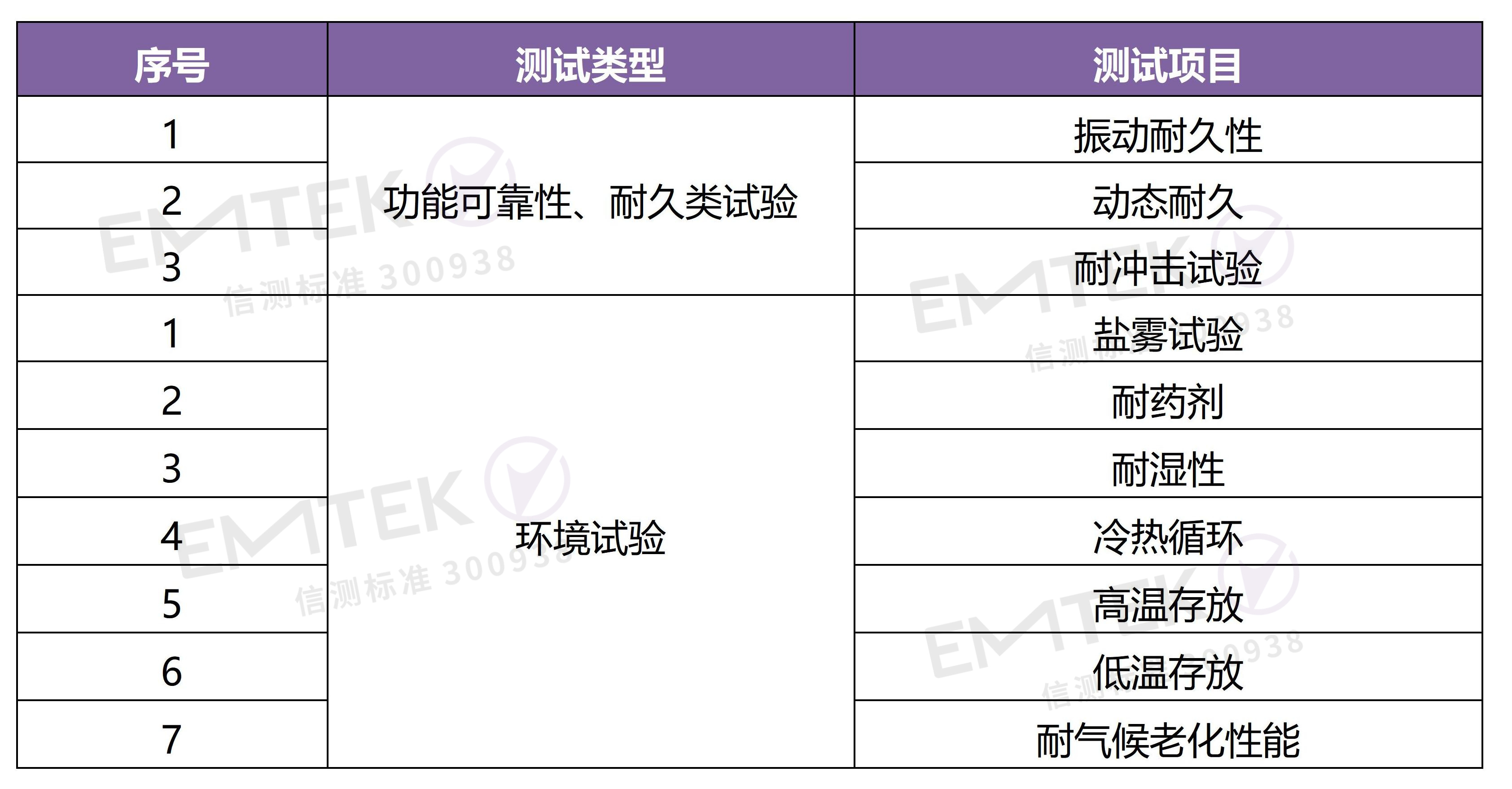 是將產品暴露在自然的或人工的環境條件下經受其作用,以評價產品在實際使用、運輸和貯存的環境條件下的性能,并分析研究環境因素的影響程度,包含的環境試驗如高溫存放,低溫存放,冷熱循環耐久性能,耐氣候老化性能,耐濕性能,鹽霧試驗等。