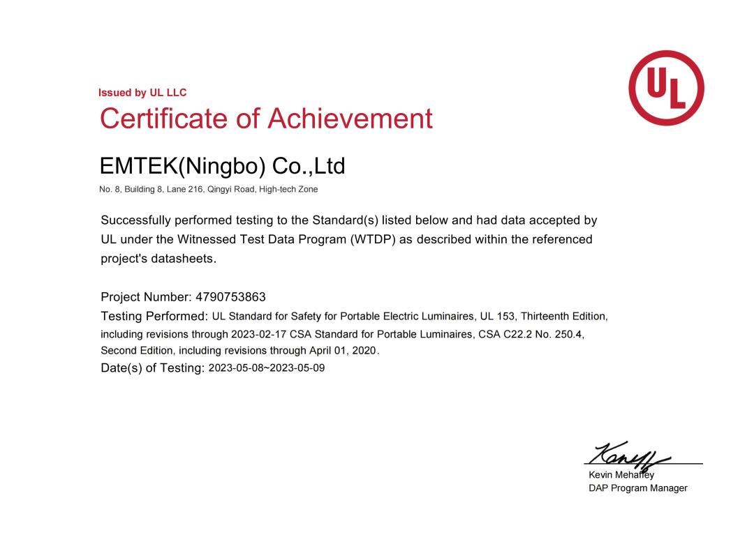 近日,寧波市信測檢測技術有限公司順利通過UL153便攜式燈具實驗室,收到UL公司簽發(fā)WTDP目擊測試資質(zhì)證書。此次評審是對寧波信測公司實驗室檢測能力綜合肯定和人員的認可,信測標準長期以來保持和UL友好合作,是UL公司TPTDP免目擊和WTDP目擊測試實驗室。