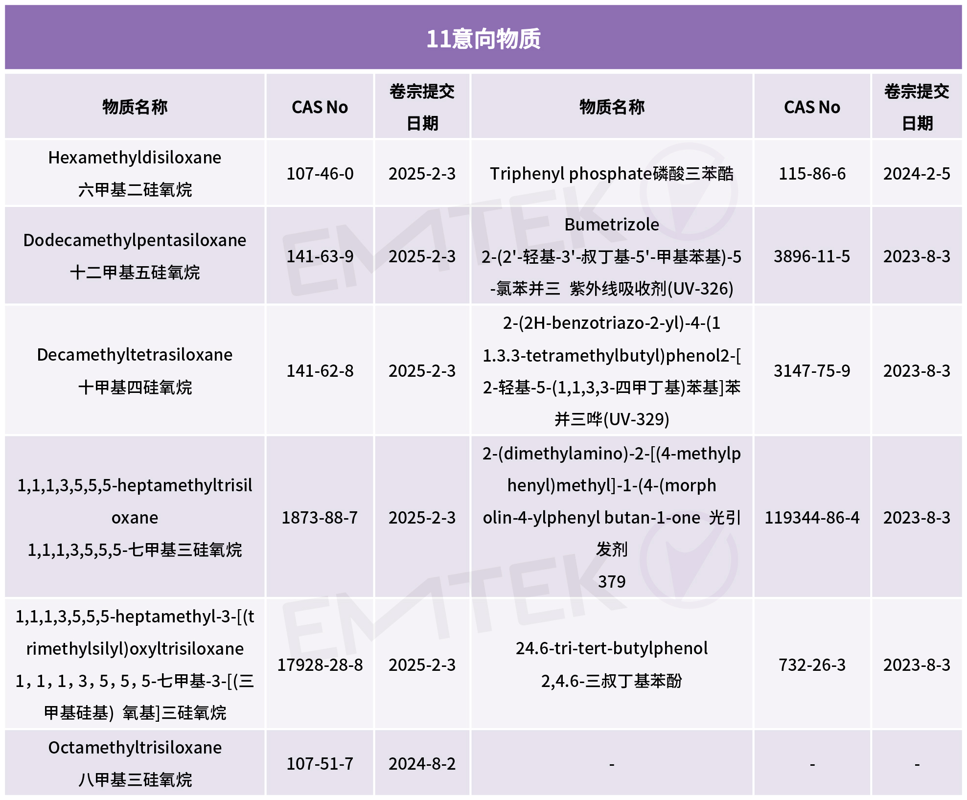 ECHA更新了11項SVHC意向物質清單