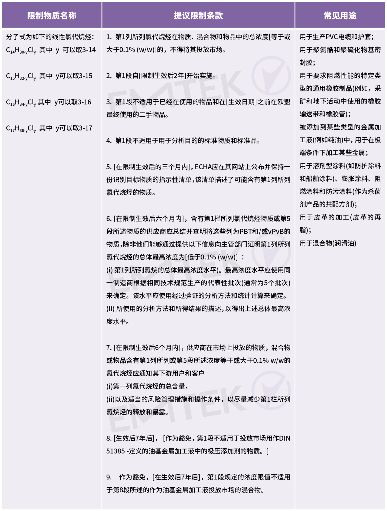 ECHA提議新增MCCP于REACH 附錄17限制條款