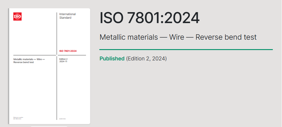 近日,由深圳信測(cè)標(biāo)準(zhǔn)技術(shù)服務(wù)股份有限公司牽頭起草的國(guó)際標(biāo)準(zhǔn)ISO 7801:2024 Metallic materials — Wire — Reverse bend test 《金屬材料 線材 反復(fù)彎曲試驗(yàn)方法》正式批準(zhǔn)發(fā)布。