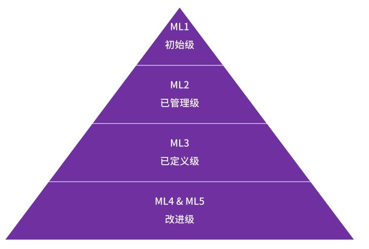 成熟度模型共有5個(gè)級(jí)別(ML1~ML5):