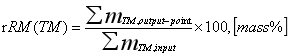 rRM:針對某一回收流程,從廢舊電池中計算得出的材料回收率,%;